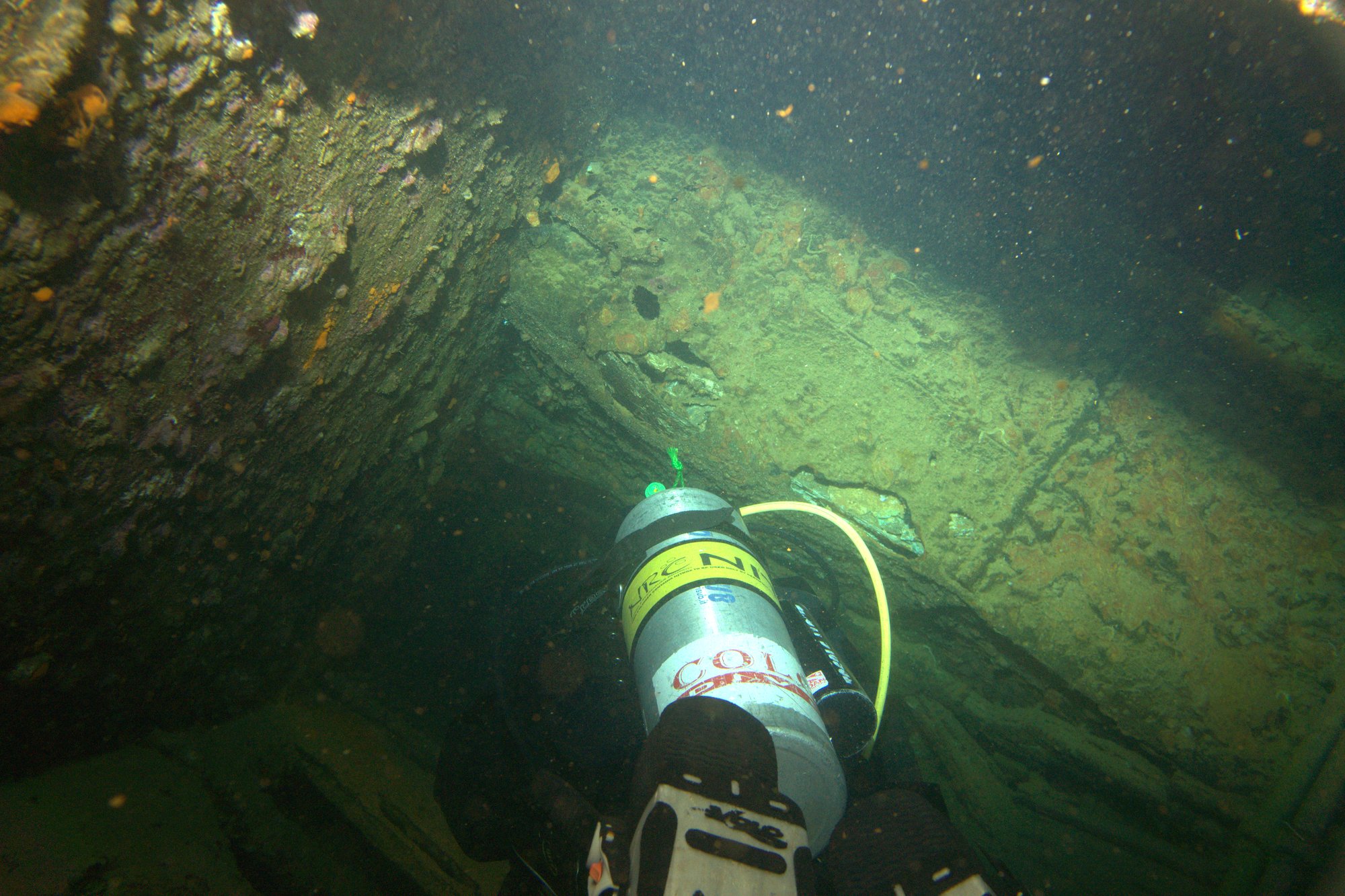 WWII supply ship sunk by German bombers in 1941. Intact wreck at 40m.