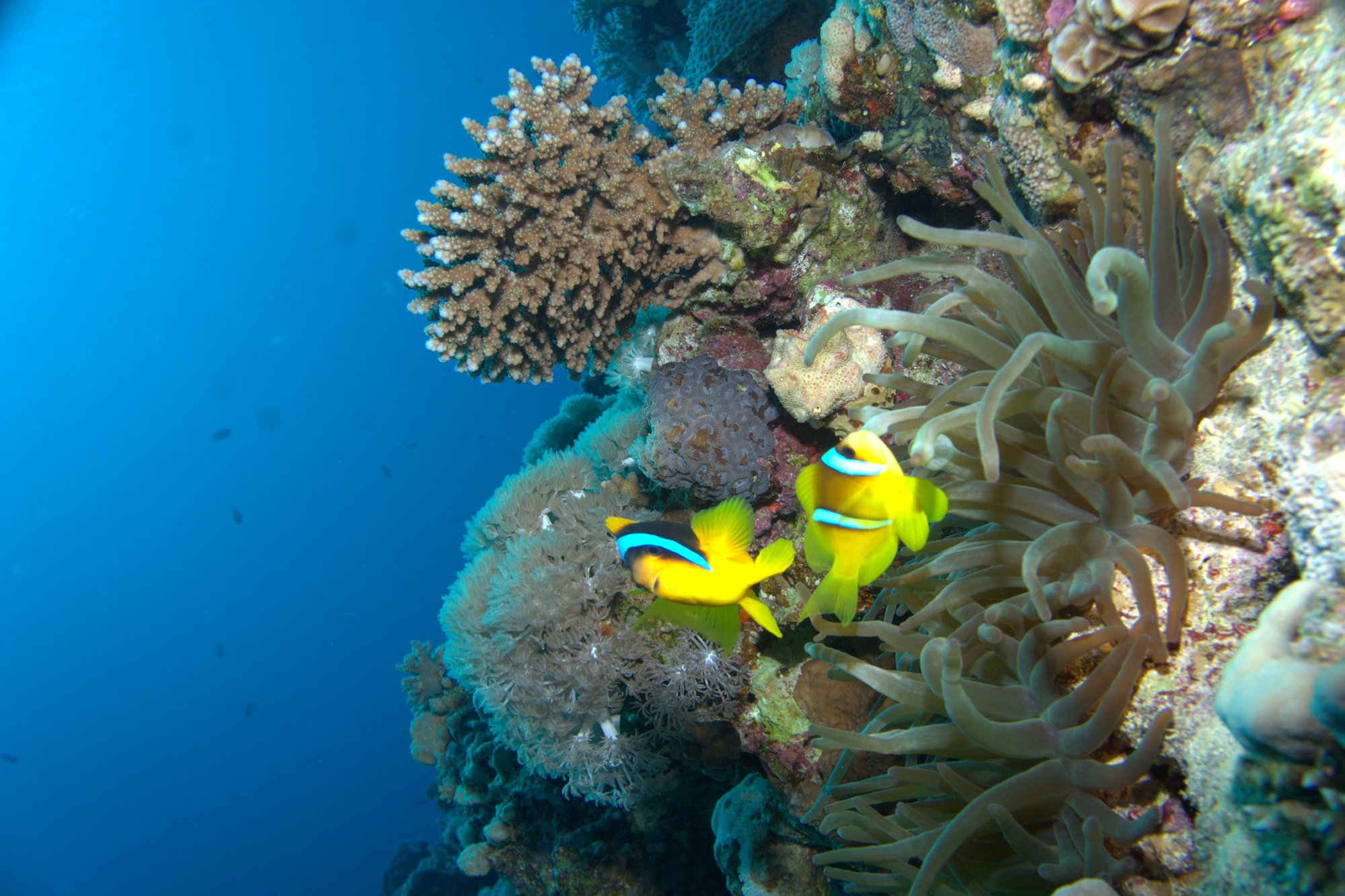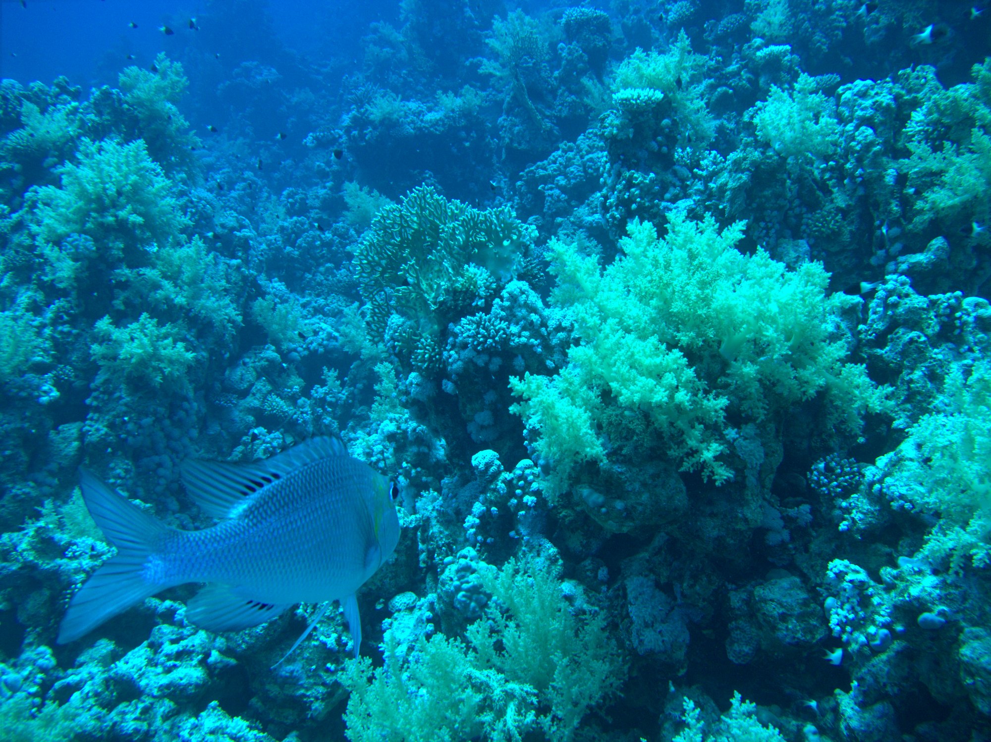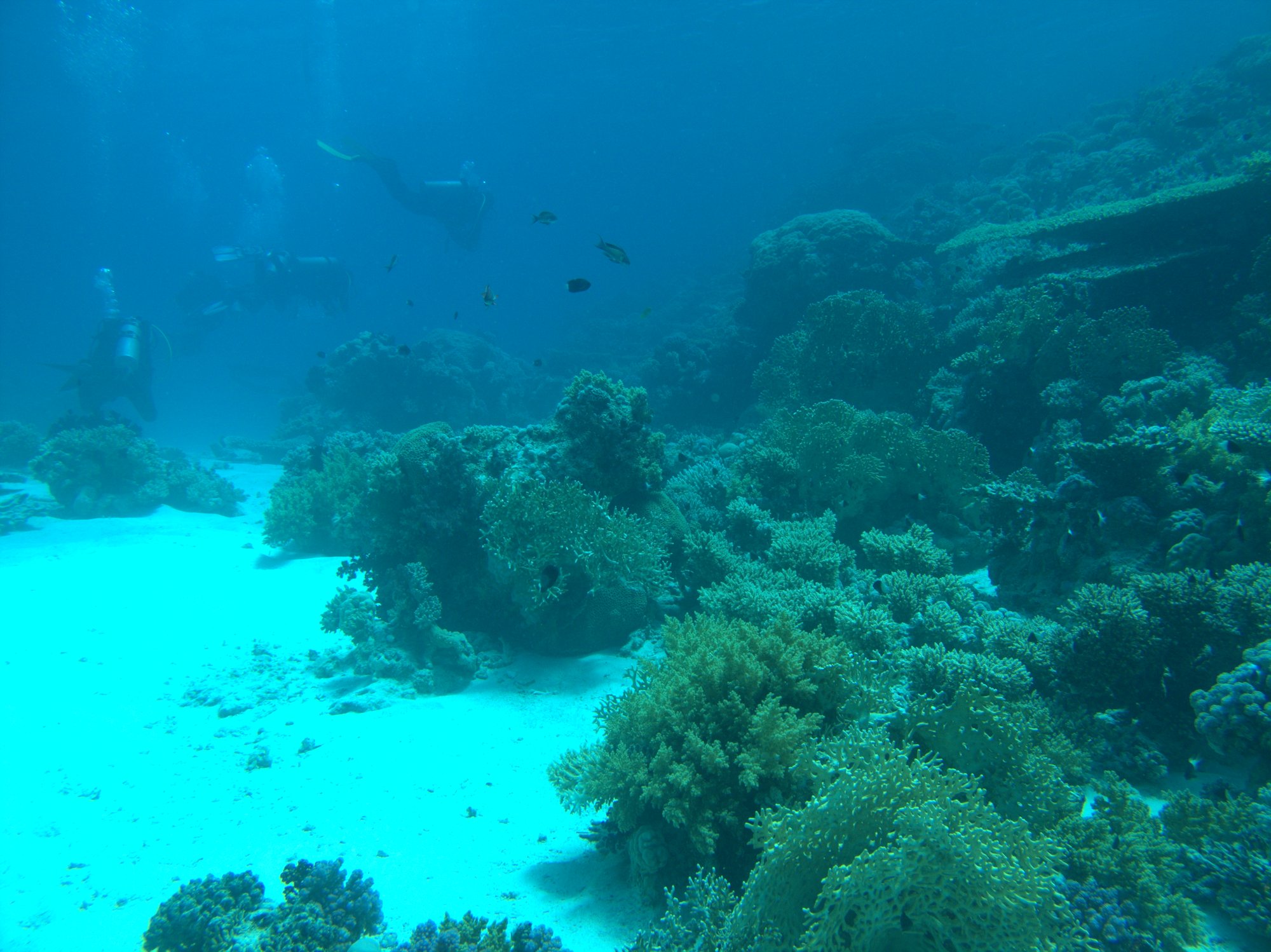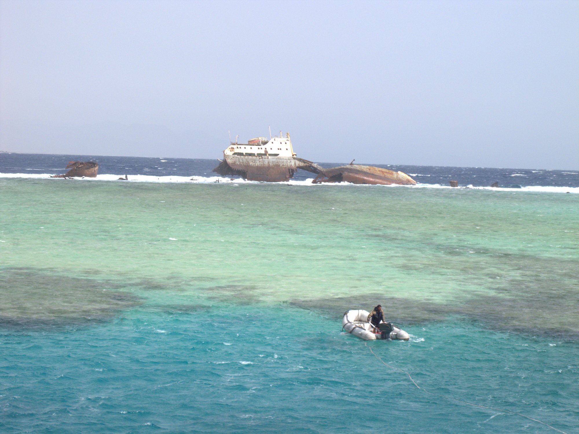 Reef at Sha'ab Abu Nuhas, Red Sea. Graveyard of ships — 4+ wrecks on a single reef.