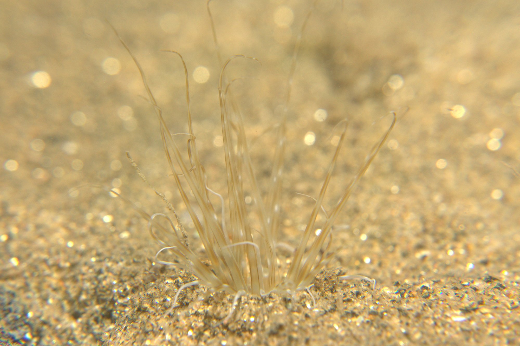 This is a night diving site first and foremost. After dark, the pier pilings transform into a stage for nocturnal crustaceans — crabs patrol the sand between columns, shrimp hover in torch beams, and anemones extend feeding tentacles they keep retracted by day. SASBA, the local dive club, has run organised night dives here since 1973, making this one of the longest-running club dive operations on the Catalan coast. The combination of urban proximity and genuinely different night fauna gives it a character unlike the deeper boat dives further up the Maresme.
