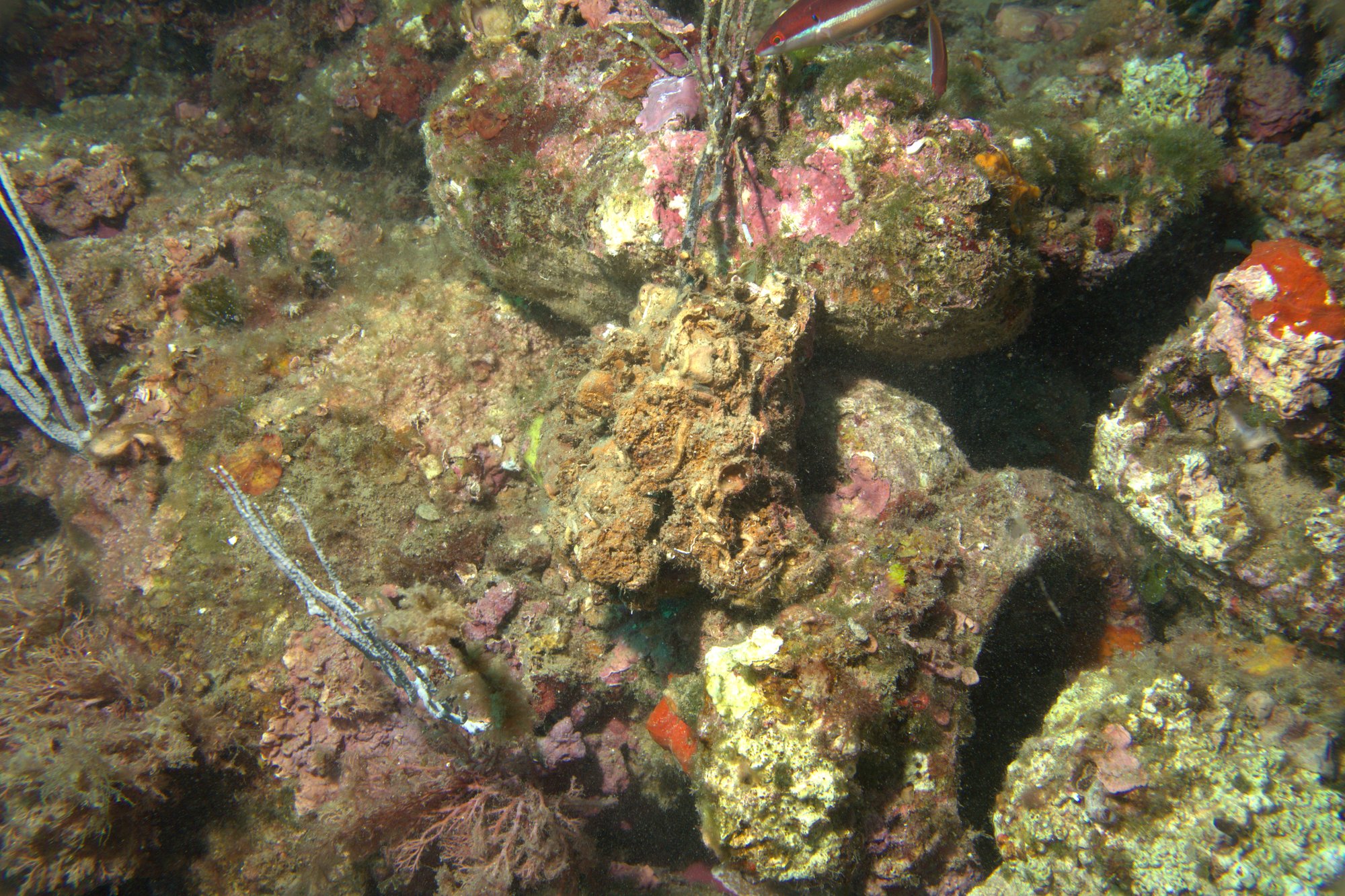 Pedra de Déu is the gorgonian dive of the Illes Medes. Other sites in the archipelago have sea fans, but the sheer concentration here — three species blanketing the wall from 15 metres downward — prompted Xaloc Dive to call it one of the best gorgonian walls on the entire Costa Brava. The northeast exposure facing open water adds a second dimension: eagle rays and sunfish pass through more frequently here than at other Medes sites, according to local operators, rewarding divers who remember to look away from the wall and scan the blue. The deep canyons deliver something the shallower Medes sites cannot — crawfish and lobsters in rocky fissures at 45 metres, a fauna reserved for those with the certification and air management to reach them.